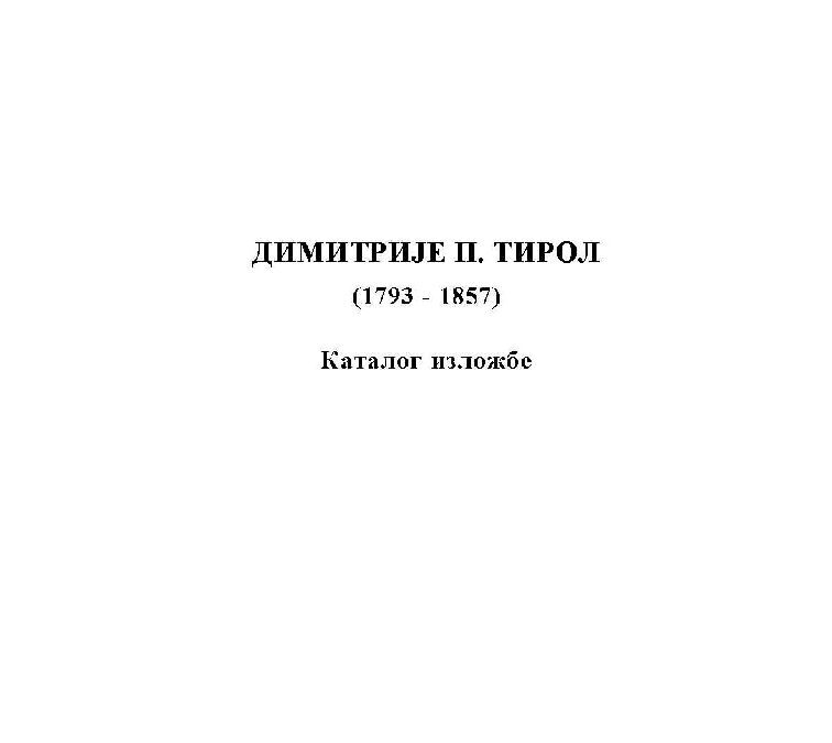 Наслов: Димитрије П. Тирол : (1793-1857) : каталог изложбе