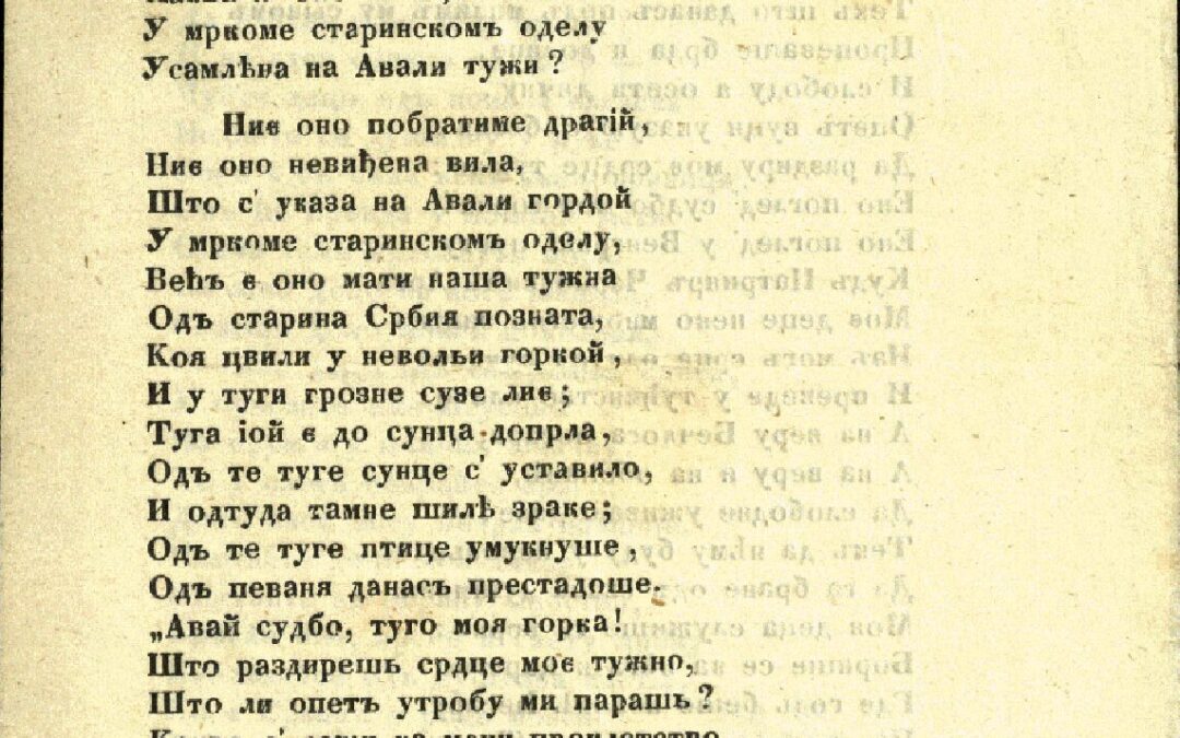 НИКОЛИЋ, Атанасије Мати Србия / [Чича Срећко]. - [Београд : б. и., 1848]. - [3] стр. ; 22 cm. - Кириловић 1314; Српске штампане књиге БМС 1801-1867, 2951. - Насл. над текстом. - Псеудоним аутора разрешен према наведеном извору. - Место и год. издавања дати према наведеном извору.
