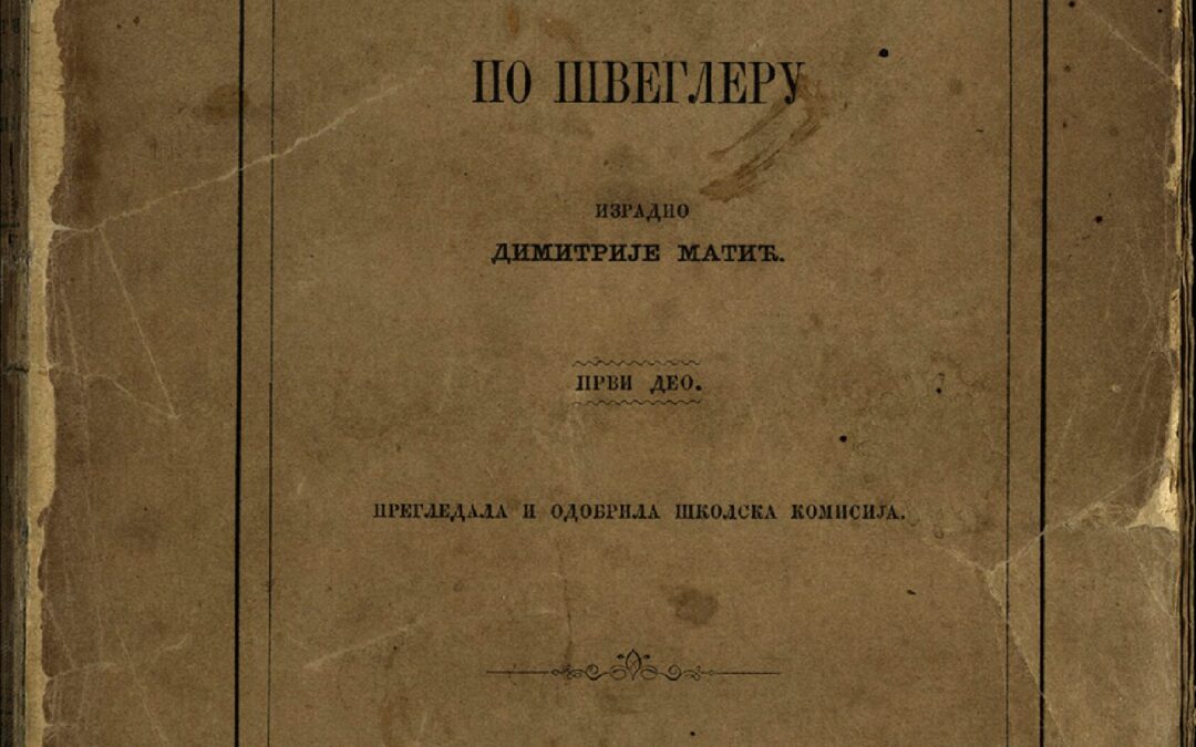 МАТИЋ, Димитрије Историја филозофије. Део 1 / по Швеглеру израдио Димитрије Матић. - У Београду : у Државној штампарији, 1865. - [6], 221, [1] стр. ; 24 cm. Новаковић 2782; Кириловић 2458; КНБС 1433; Српске штампане књиге БМС 1801-1867, 2302. - "Прегледала и одобрила школска комисија." --> насл. стр.