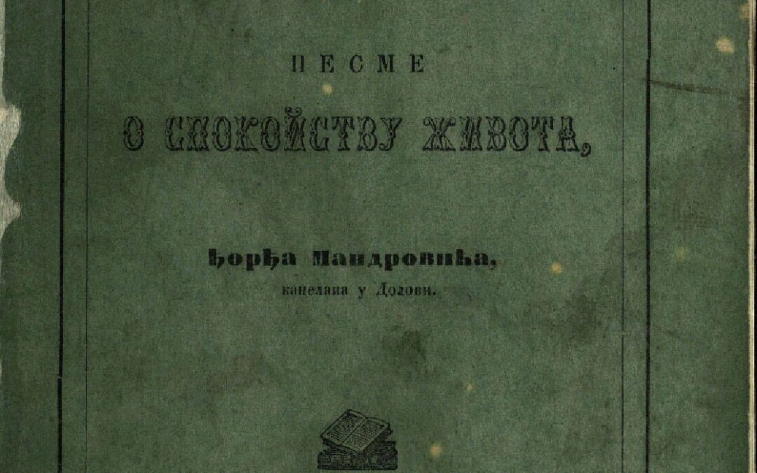 МАНДРОВИЋ, Ђорђе Преѕорѣ : песме о спокойству живота Ђорђа Мандровића.... - У Земуну : КнЬигопечатня І.К. Сопронова, 1864. - VII, [1], 118 стр. ; 21 cm. Кириловић 2349; КНБС 1407; Српске штампане књиге БМС 1801-1867, 2262. - Списак пренумераната.