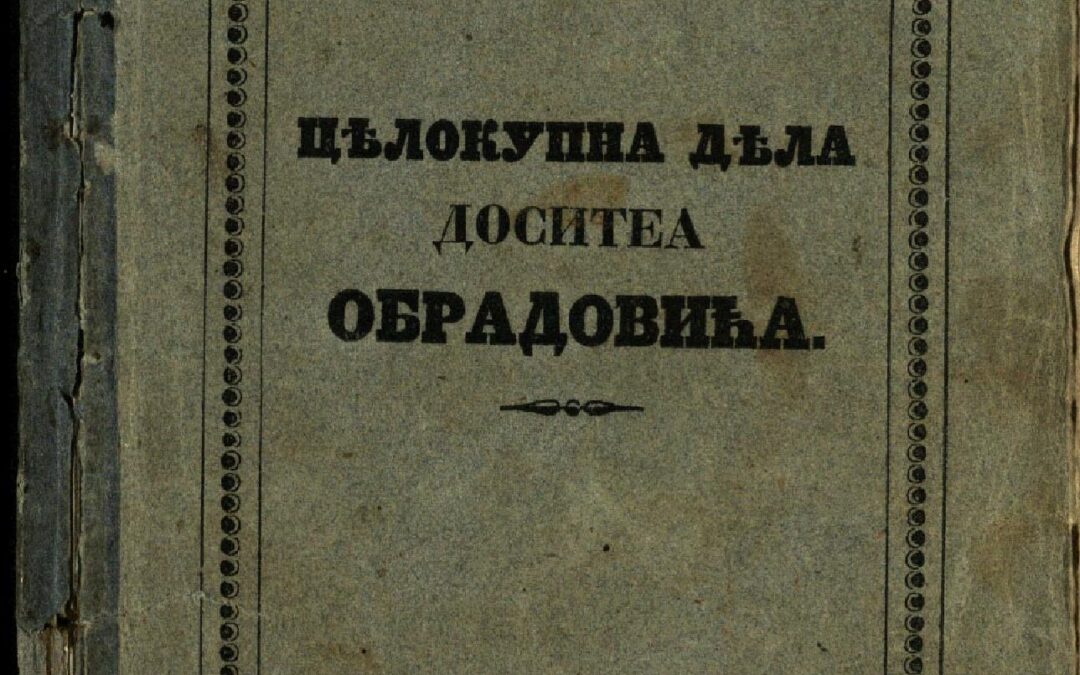 ОБРАДОВИЋ, Доситеј Цѣлокупна дѣла Доситеа Обрадовића. [Кнь. 1, Животъ и приключенія...]. - У Земуну : Препечатала и издала Народна Кньигопечатня Дан. Медаковића, 1850. - XVI, 127 стр., [1] лист с портретом аутора ; 19 cm. Новаковић 1670; Кириловић 1463; КНБС 1810; Српске штампане књиге БМС 1801-1867, 3169. - [Предговор] / Дан. Медаковић: стр. V-XII.