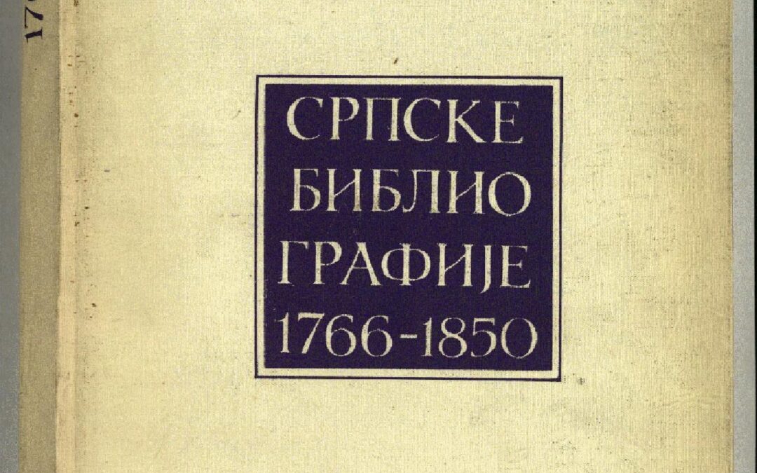 ПАНКОВИЋ, Душан Српске библиографије : 1766-1850 / Душан Панковић. - Београд : Народна библиотека Србије ; [Нови Сад] : Библиотека Матице српске, 1982 (Београд : Народна библиотека Србије). - 415 стр. : илустр. ; 27 cm