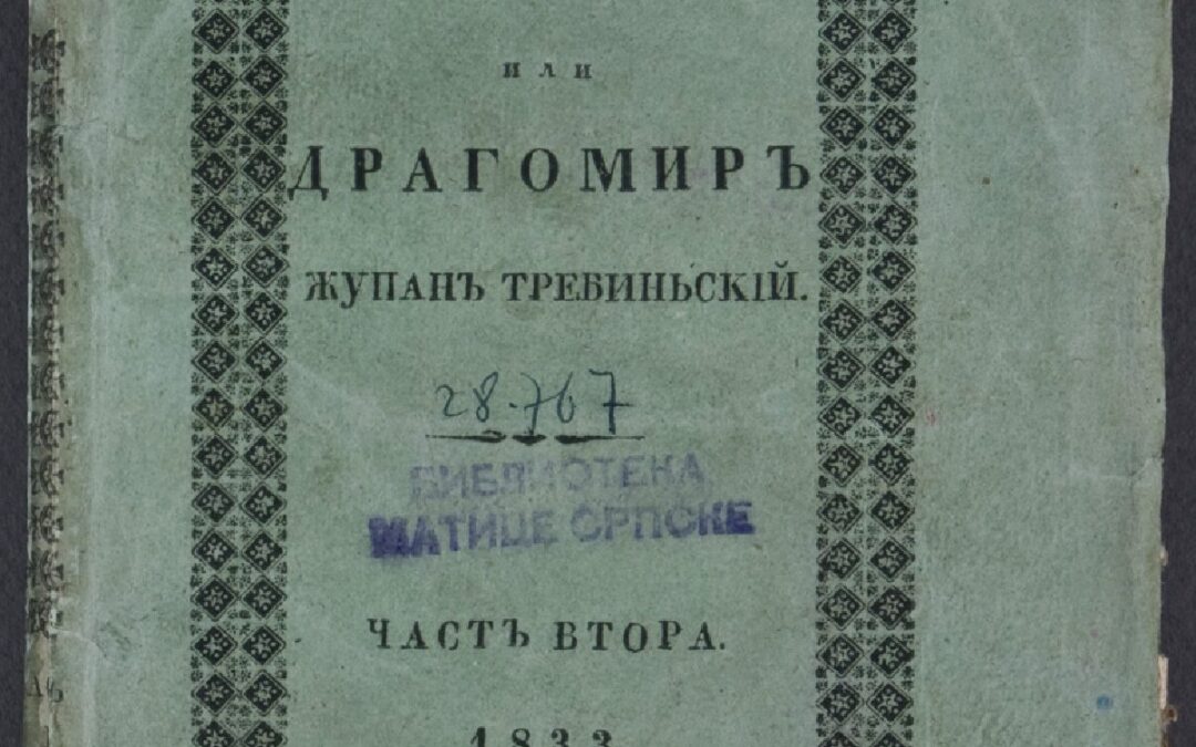 МИХАЈЛОВИЋ, Евстатије Освета и судбина или ДрагомирЪ жупанЪ требинЬскій. ЧастЬ 2 / отЪ Еýстаөіа Міхайловича. - У Будиму : Писмены Кр. Всеучилища ПештанскогЪ, 1833. - 170 [тј. 171] стр., [1] лист с таблом ; 20 cm. Новаковић 869; Кириловић 729; КНБС 1567; Панковић 788; Српске штампане књиге БМС 1801- 1867, 2633. - "Rache und Schicksal." --> насл. стр. (гот.). - Списак пренумераната
