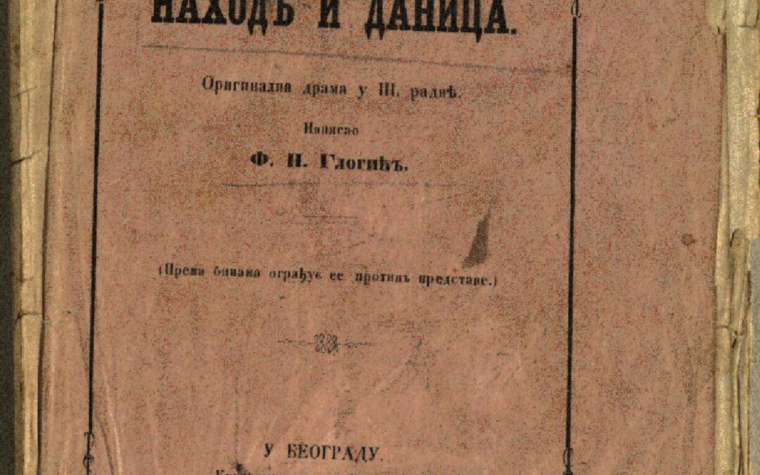 ГЛОГИЋ, Ф. Н. Находъ и Даница : Оригинална драма у III. раднě / Написао Ф. Н. Глогићъ. - У Београду : Печатня А. Андрића, 1865. - 72 стр. ; 21 cm Новаковић 2744; Кириловић 2425. - Броширано.: Патронат 4045: БМСНС. - На маргини посл. стр. потпис: ЈБичански. - Печати: Срб. вел. гимназия у Нов. Саду; Мушка Гимназија Нови Сад; Библиотека Српске прав. велике гимназије. - Старе сигн.: П II 149, N 131. Напомена: Комплетна публикација је доступна само у просторијама Библиотеке Матице српске