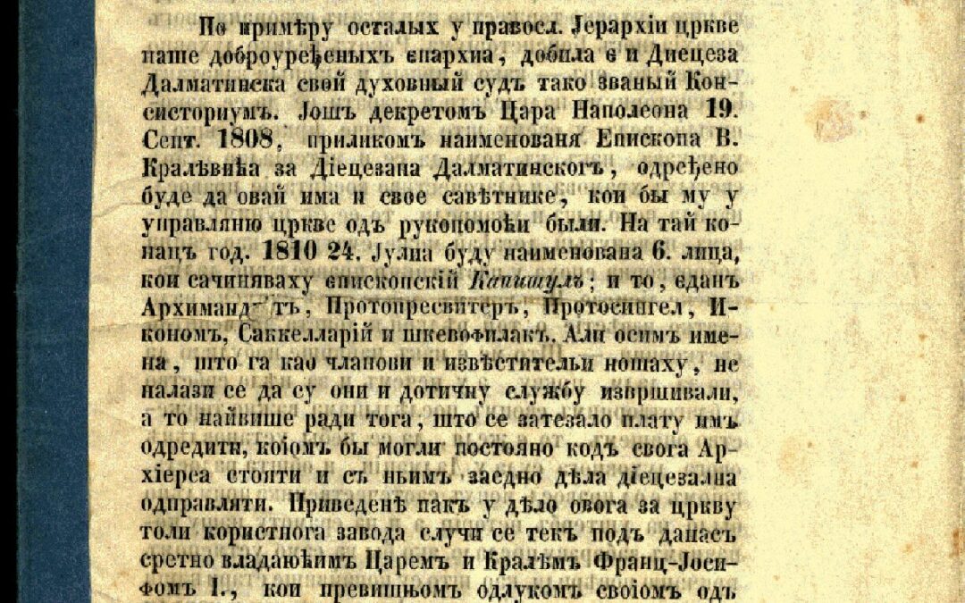 Наслов: Свечаност приликом отварања православно-источнога Консисторијума Епархије Далматинске