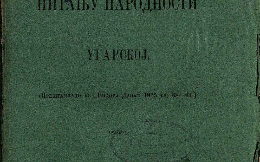 ГЛАС из Србије о питању народности у Угарској . - У Београду : Државна штампарија, 1865. - [2], 153, [1] стр. ; 21 cm. Новаковић 2742; Кириловић 2423; КНБС 466; Српске штампане књиге БМС 1801-1867, 809. - П. о.: "Видов Дан"; бр. 68-94, 1865.