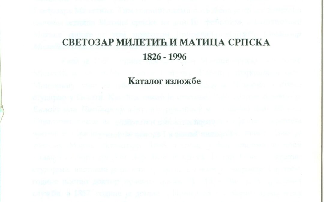 Наслов: Светозар Милетић и Матица српска : 1826-1996 : каталог изложбе