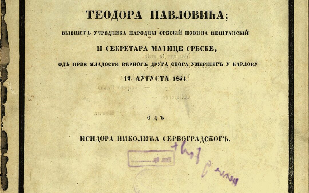 Плач над гробом благородног и високоученог господина Теодора Павловића - Исидор Николић (1854)