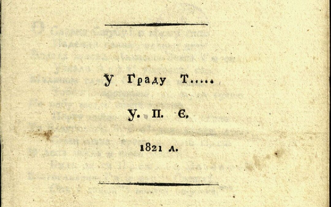 ПОПОВИЋ, Јевта Разна дѣла или Забаве младог духа при безпосленим дневима : У Граду Т... / У. П. Є. - У Вїєни : [б. и.], 1821. - 8 стр. ; 19 cm. Кириловић 514; КНБС 2048; Српске штампане књиге БМС 1801-1867, 3584. - "(Додатакъ къ числу 93 Новина Србски 1821.)" --> насл. стр. - Пуно име аутора дато према наведеним изворима.