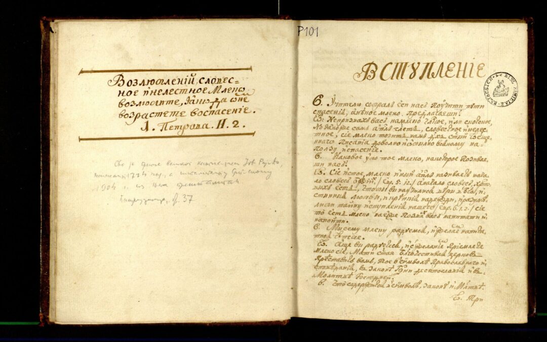Зборник - Јован Рајић Агапије Крићанин Јован РајићПисмо курзив Један писар Датирано према записима писара Повез: картон, кожа. Садржи: Велики катихизис Јована Рајића; Чудеса Пресвете Богородице од Агапија Крићанина; Географија Јована Рајића;Наслов: Зборник Аутор: Јован Рајић Агапије Крићанин Јован Рајић Збирка: НБС - Збирка ћирилских рукописних књигаБрој страна: 4Величина: 2 MBКликните да преузмете фајл: Зборник - Јован Рајић Агапије Крићанин Јован Рајић