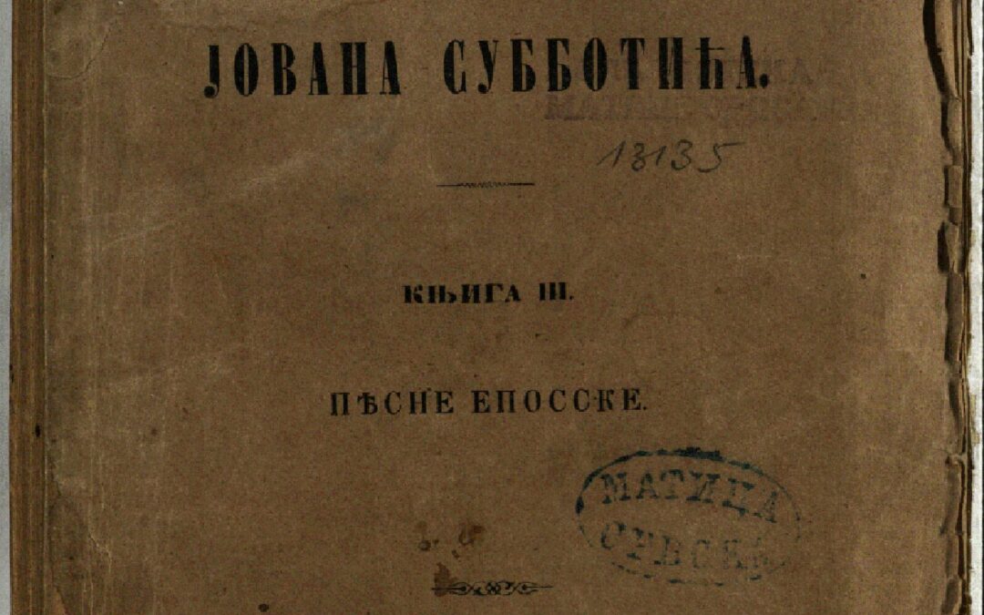 СУБОТИЋ, Јован Дěла Јована Субботића. Књ. 3, Пěсне епосске. - У Карловци : Митрополитско-Гимназијална Типографија, 1860. - 355, [5] стр. ; 16 cm. Новаковић 2321; Кириловић 2029; КНБС 2623; Српске штампане књиге БМС 1801-1867, 4584. - Списак пренумераната.