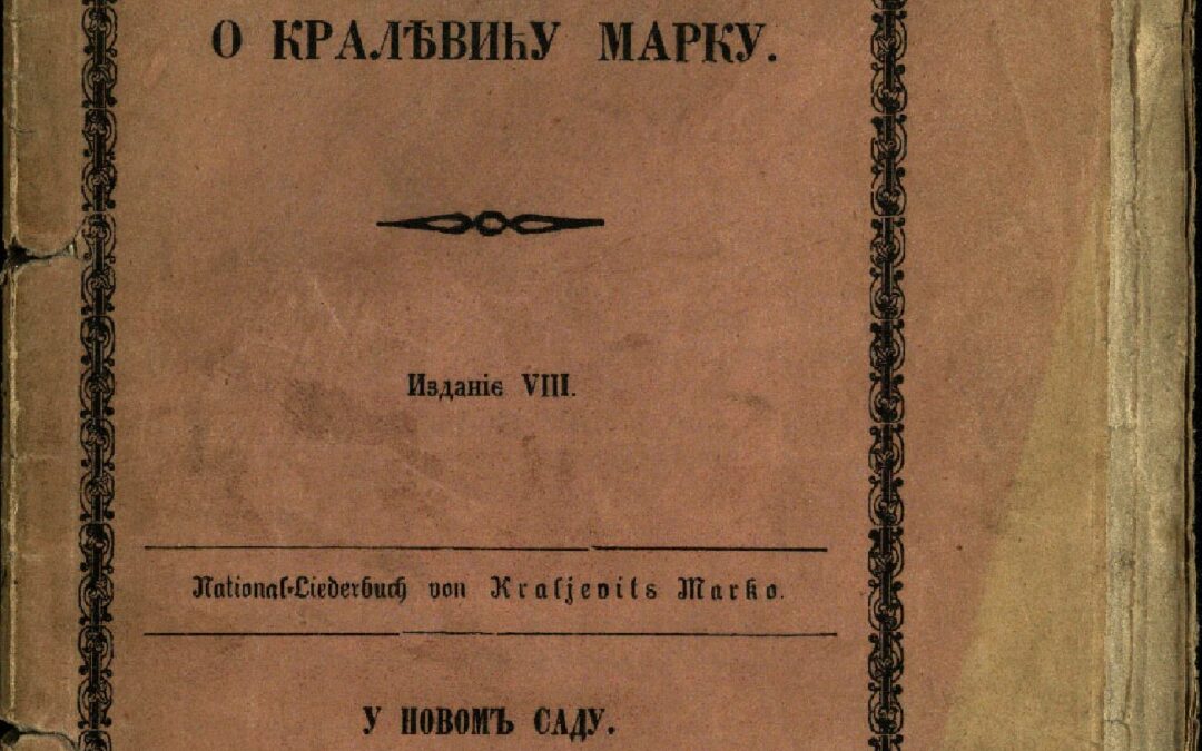 ЮНАЧКЕ народне песме о Кралѣвићу Марку. - Изданйє 8. - У Новомъ Саду : Трошкомъ Ігнята Фукса, кньижара, 1857 (У Новомъ Саду : Пачатано печатньом І. Кауліцій). - [2], 103 стр. ; 22 cm. КНБС 1038; Српске штампане књиге БМС 1801-1867, 5206. - "National Liederbuch von Kraljevits Marko." --> насл. стр. (гот.).