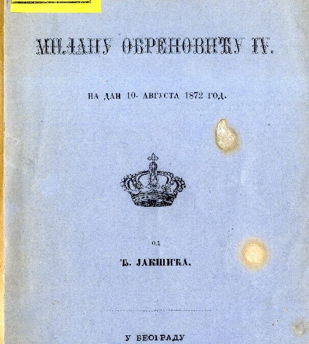 Кнезу српском Милану Обреновићу IV : на дан 10. августа 1872 год. (1872)Наслов: Кнезу српском Милану Обреновићу IV : на дан 10. августа 1872 год.Издавач: Државна штампаријаИздато: Београд, 1872 Збирка: НБС - Збирка књига Ђуре ЈакшићаБрој страна: 6Величина: 9 MBКликните да преузмете фајл: Кнезу српском Милану Обреновићу IV : на дан 10. августа 1872 год. (1872)