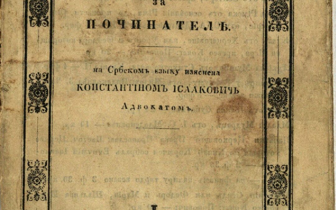 ИСАКОВИЋ, Константин Мађарска грамматіка за починателě. [Часть] 1 / На србскомъ єзыку изяснена Константіномъ Ісааковичь Адвокатомъ 1842. - У Новомъ Саду : издао П. И. Стояновичь, Кньигопродавацъ, 1843 (У Новомъ Саду : писмены Вдове Екатаріне Іанковића). - [2], 65, [1] стр. ; 19 cm. Новаковић 1239; Кириловић 1043. - Броширано.: Патронат 3654: БМСНС. - Печати: Библиотека Српске прав. велике гимназије; Срб. вел. гимназия у Нов. Саду; Мушка Гимназија Нови Сад. - Старе сигн.: 1169; 204 Е 75: Патронат 3654: БМСНС Напомена: Комплетна публикација је доступна само у просторијама Библиотеке Матице српске