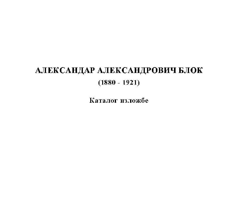 Наслов: Блок Александар Александрович Блок : (1880-1921) : каталог изложбе