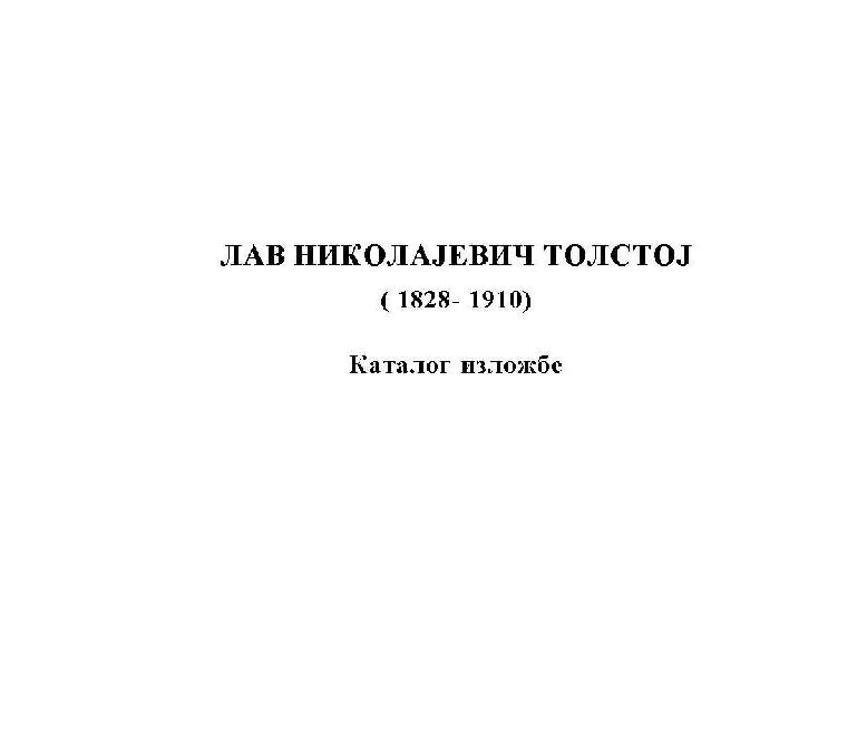 Наслов: Лав Николајевич Толстој : (1828-1910) : каталог изложбе