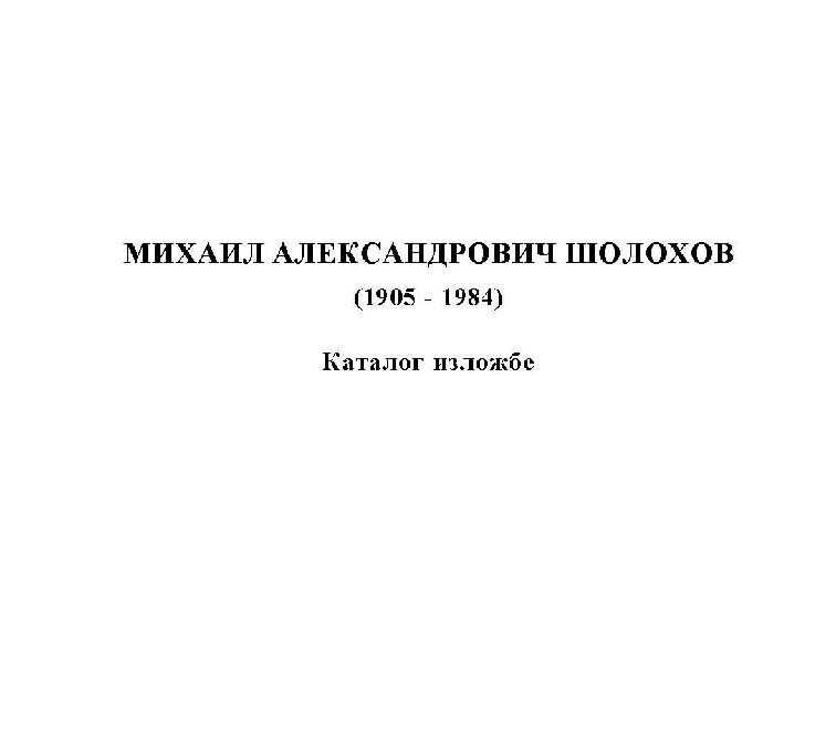 Наслов: Михаил Александрович Шолохов : (1905-1984) : каталог изложбе