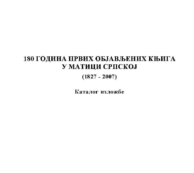 Наслов: Сто осамдесет година првих објављених књига у Матици српској : (1827-2007) : каталог изложбе