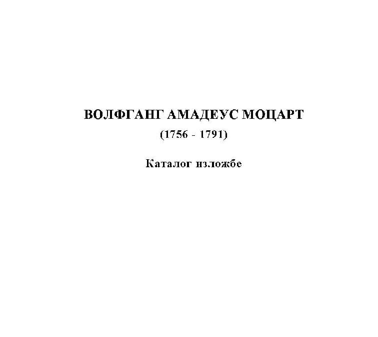 Наслов: Волфганг Амадеус Моцарт : (1756-1791) : каталог изложбе