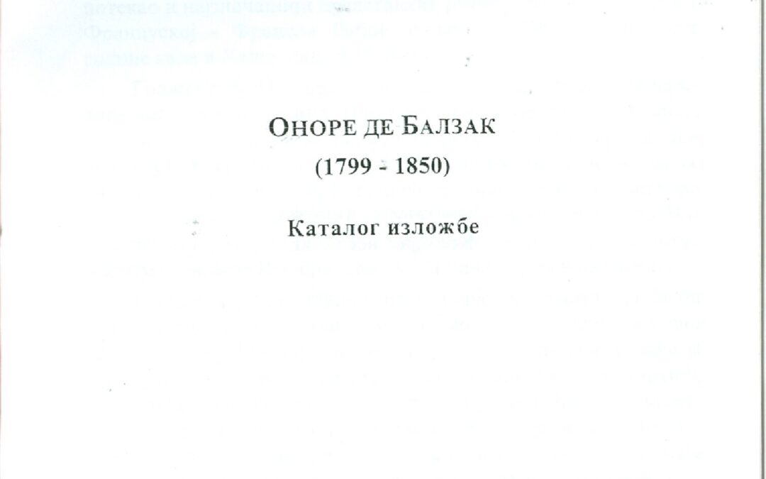 Наслов: Оноре де Балзак : (1799-1850) : каталог изложбе