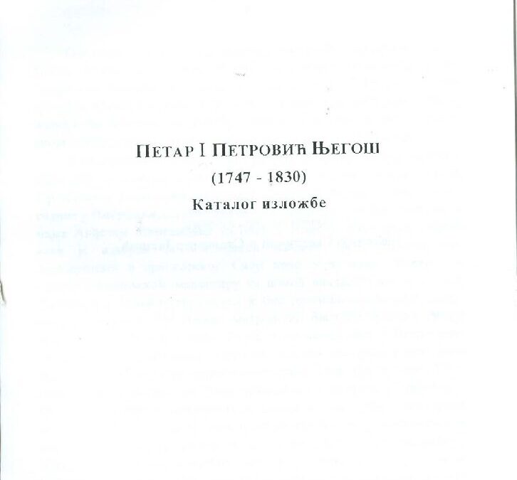 Наслов: Петар I Петровић Његош : (1747-1830) : каталог изложбе