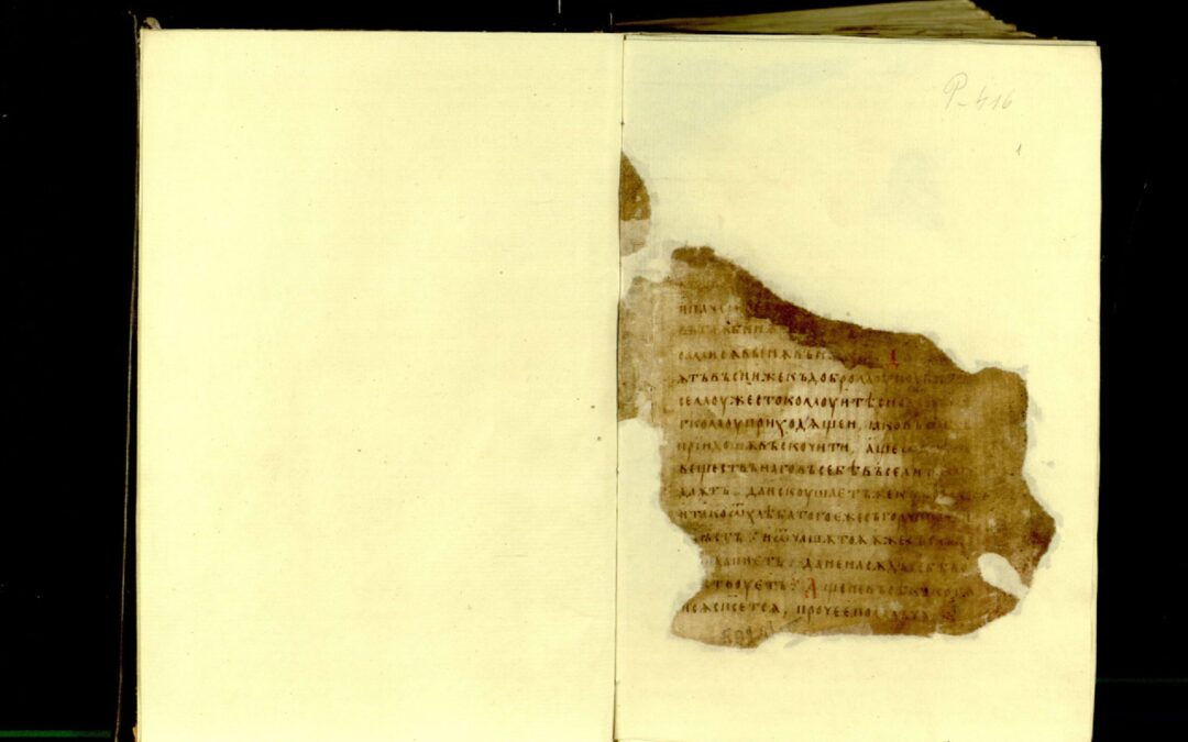 Језик текста ? , писмо устав Један писар Датирано према палеограф. и ортограф. одликама и воденим знацима Иницијали Повез: картон, кожа.