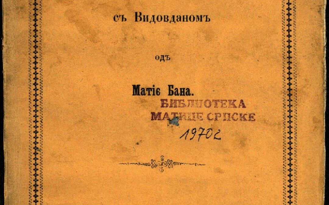 БАН, Матија Државословна разправа сЪ ВидовданомЪ / одЪ Матіє Бана. - У Београду : Печатня А. Андрића, 1865. - [4], 128, [1] стр. ; 21 cm. Новаковић 2733; Кириловић 2409; КНБС 126; Српске штампане књиге БМС 1801-1867, 195.