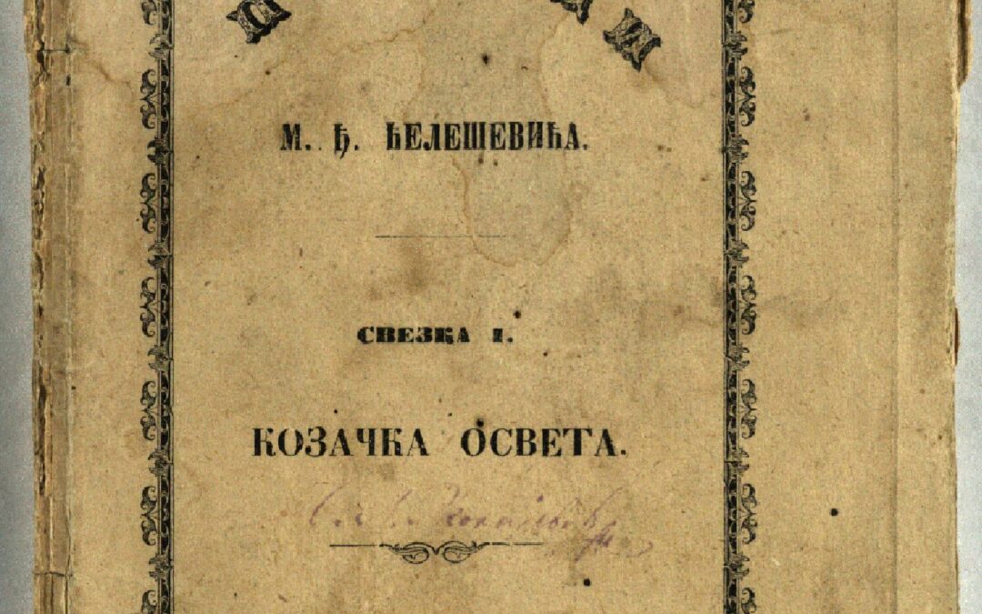 ЧАЈКОВСКИ, Михаил Козачка освета / изЪ ЧайковскогЪ сЪ немачкогЪ преведена. - У Београду : при правителЬственой кнЬигопечатнЬи, 1854. - [6], 68 стр. ; 16 cm. - (Преводи Міяила Ђ. Ћелешевића у оставки Канцелисте АпелаціоногЪ Суда II Одěленія. Св. 1) Новаковић 1927; Кириловић 4752; КНБС 2896; Српске штампане књиге БМС 1801-1867, 4968.