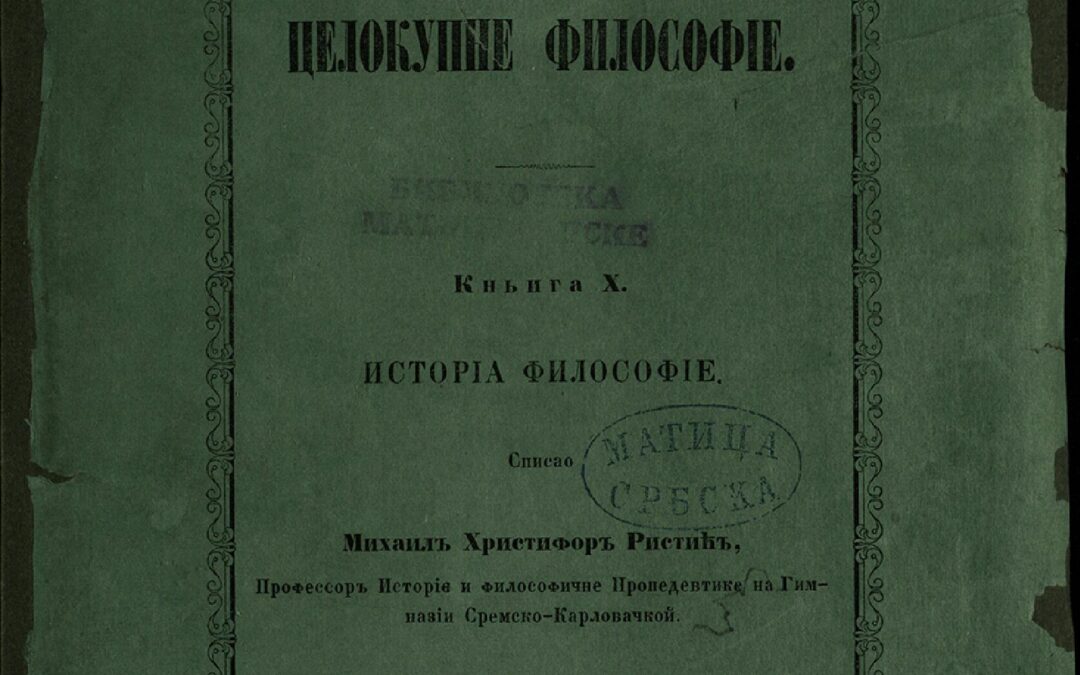 Система целокупне философије. Књ. 10, Историја философије - Михаило Христифор Ристић (1860)РИСТИЋ, Михаило Христифор Система целокупне философіе. Кнь. 10, Исторіа философіе / списао Михаилъ Хр. Ристићъ.... - У Карловцы : Митрополітско-Гимназіална Типографіа, 1860. - 119, [1] стр. ; 24 cm. Новаковић 2319; Кириловић 2020; КНБС 2374; Српске штампане књиге БМС 1801-1867, 4091.Кључне речи: ФилозофијаНаслов: Система целокупне философије. Књ. 10, Историја философије Аутор: Михаило Христифор РистићИздавач: Митрополитско-гимназијска штампаријаИздато: Сремски Карловци, 1860 Збирка: МС - Српске књиге 1801-1867Број страна: 124Величина: 141 MBКликните да преузмете фајл: Система целокупне философије. Књ. 10, Историја философије - Михаило Христифор Ристић (1860)