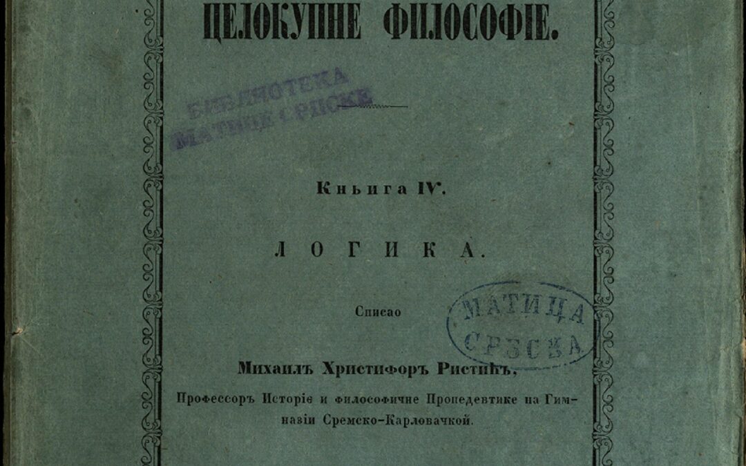 РИСТИЋ, Михаило Христифор Система целокупне философіе. Кнь. 4, Логика / списао Михаилъ Хр. Ристићъ.... - У Карловцы : Митрополітско-Гимназіална Типографіа, 1859. - 127 стр. ; 24 cm. Новаковић 2245; Кириловић 1942; КНБС 2374; Српске штампане књиге БМС 1801-1867, 4085.