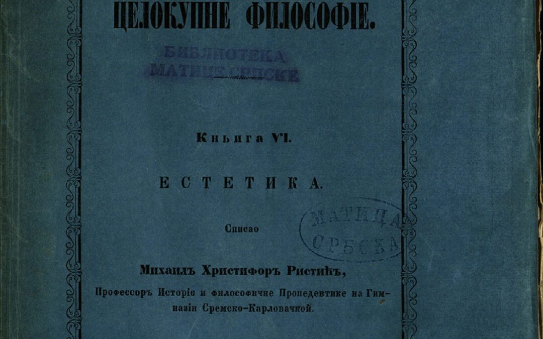 РИСТИЋ, Михаило Христифор Система целокупне философіе. Кнь. 6, Естетика / списао Михаилъ Хр. Ристићъ.... - У Карловцы : Митрополітско-Гимназіална Типографіа, 1860. - 120 стр. ; 24 cm. Новаковић 2319; Кириловић 2016; КНБС 2374; Српске штампане књиге БМС 1801-867, 4087.