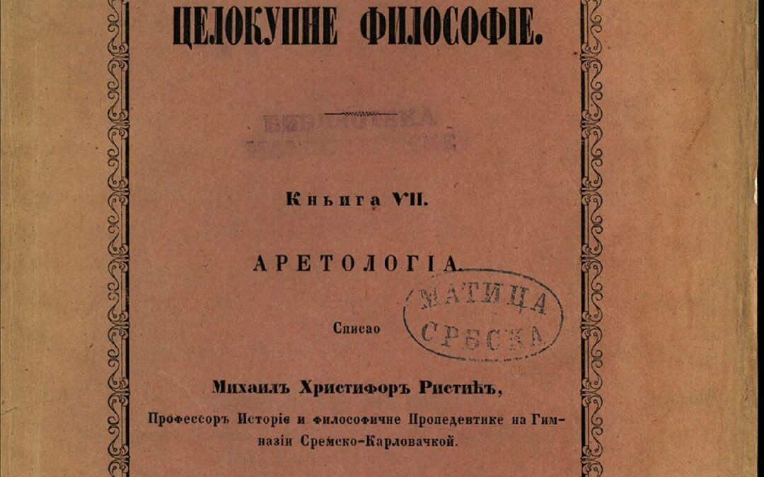 Система целокупне философије. Књ. 7, Аретологија - Михаило Христифор Ристић (1860)РИСТИЋ, Михаило Христифор Система целокупне философіе. Кнь. 7, Аретологіа / списао Михаилъ Хр. Ристићъ.... - У Карловцы : Митрополітско-Гимназіална Типографіа, 1860. - 96 стр. ; 24 cm. Новаковић 2319; Кириловић 2017; КНБС 2374; Српске штампане књиге БМС 1801-1867, 4088.Кључне речи: ФилозофијаНаслов: Система целокупне философије. Књ. 7, Аретологија Аутор: Михаило Христифор РистићИздавач: Митрополитско-гимназијска штампаријаИздато: Сремски Карловци, 1860 Збирка: МС - Српске књиге 1801-1867Број страна: 100Величина: 122 MBКликните да преузмете фајл: Система целокупне философије. Књ. 7, Аретологија - Михаило Христифор Ристић (1860)