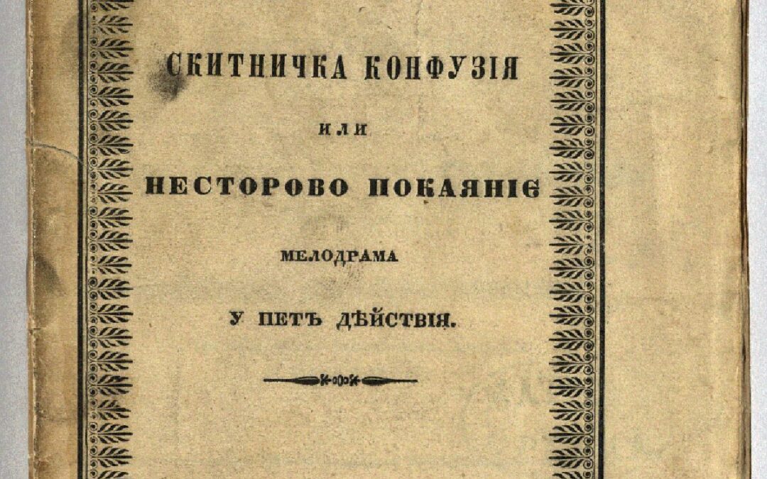 ЖИВОЈНОВИЋ, Мојсеј Скитничка конфузія или Несторово покаяніє : мелодрама у петЪ дěйствія / саставлěна МойсеомЪ ЖивойновићемЪ, ПисарЪ Среза ОмолЬскогЪ, Окружія ПожаревачкогЪ. - У Бěограду : У Княжеско-Србской КнЬигопечатнЬи, [1844]. - [8], 129, [6] стр. ; 18 cm. Новаковић 1281; Кириловић 1106; КНБС 701; Панковић 1161; Српске штампане књиге БМС 1801-1867, 1198. - Год. издавања преузета из предговора. - Списак пренумераната
