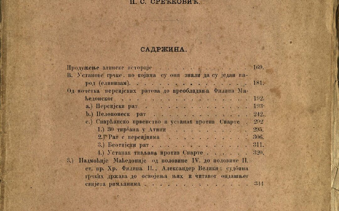 СРЕЋКОВИЋ, Пантелија Стара историја. Књ. 2. Св. 3-4 / написао П.С. Срећковић. - У Биограду : У Државној штампарији, 1866. - Стр. 169-344 ; 23 cm. Новаковић 3000; КНБС 2541; Српске штампане књиге БМС 1801-1867, 4402