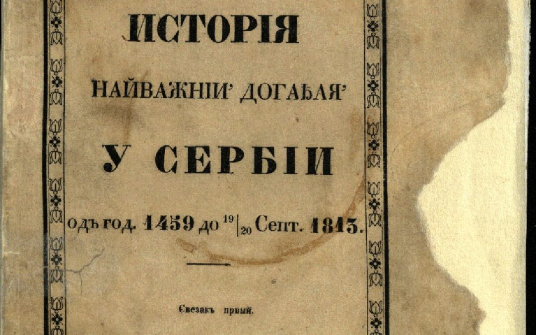 ЈОВАНОВИЋ, Павле Исторія найважніи догађая у Сербіи : одъ год. 1459 до 19/20. септ. 1813. Св. 1 / списана одъ Павла Јоанновића. - У Новомъ Саду : Печатано Писмены Јоанна Каулицій, 1847. - [10], 96, [13] стр. ; 22 cm. Новаковић 1463; Кириловић 1216; КНБС 1000; Панковић 1359; Српске штампане књиге БМС 1801-1867, 1663. - Списак пренумераната.