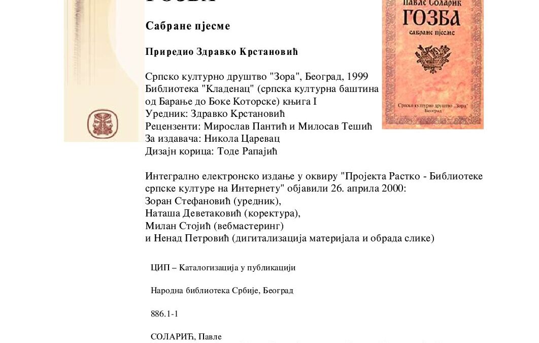 Гозба: Сабране пјесме - Павле Соларић (1999)