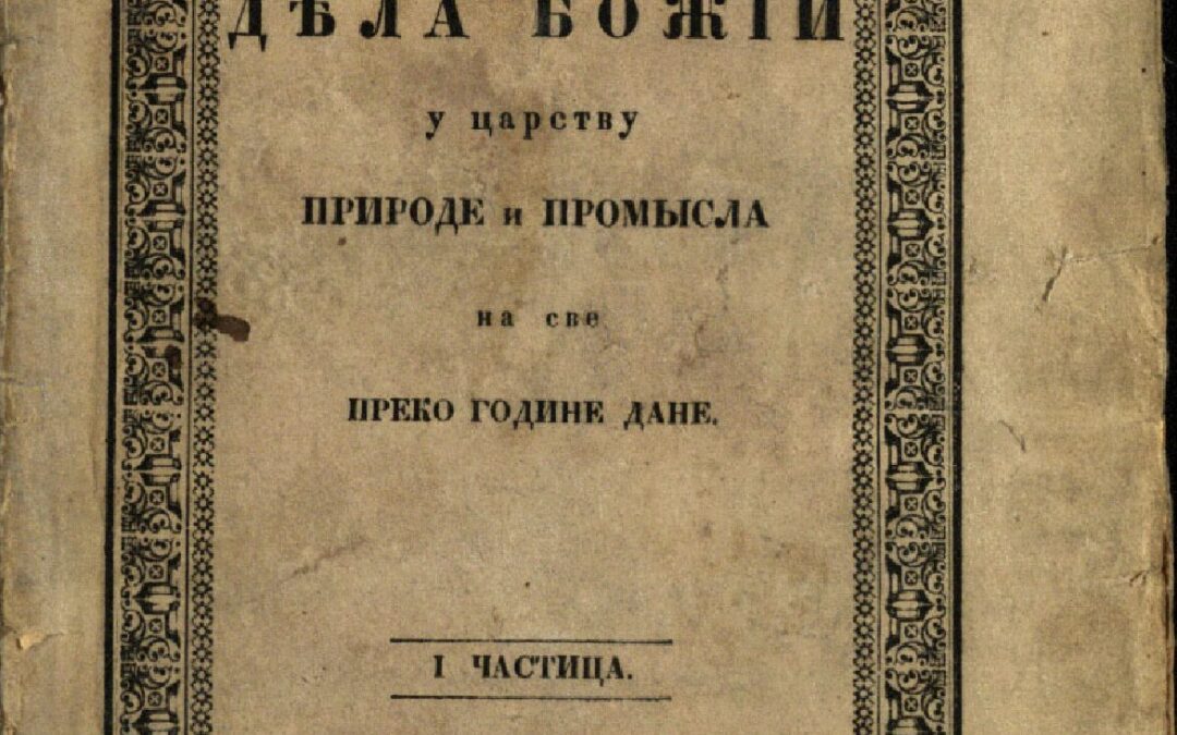 СМАТРАНѢ дѣла Божіи у царству природе и промысла на све преко године дане. Частица 1 / Преведено Паѵломъ Стаматовићемъ. - У Соєдину (Сегедину) : Писменима Іоана Гринна, ц.к. Тѵпографа, [1841]. - [4], 125 стр. ; 22 cm. Новаковић 3273; Кириловић 994; КНБС 2485; Панковић 1054; Српске штампане књиге БМС 1801-1867, 4293 . - Год. издавања дата према Кириловићу, КНБС и Панковићу. - Списак пренумераната.