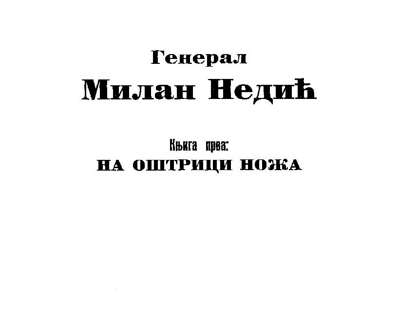 Књига 'Генерал Милан Недић: На оштрици ножа' представља први том биографије генерала Милана Недића, коју је написао његов сестрић, Станислав Краков. Ово дело пружа детаљан увид у живот и војну каријеру генерала Недића, као и у политичке околности у којима је деловао током Другог светског рата. Књига је првобитно објављена у емиграцији 1963. године у Минхену.