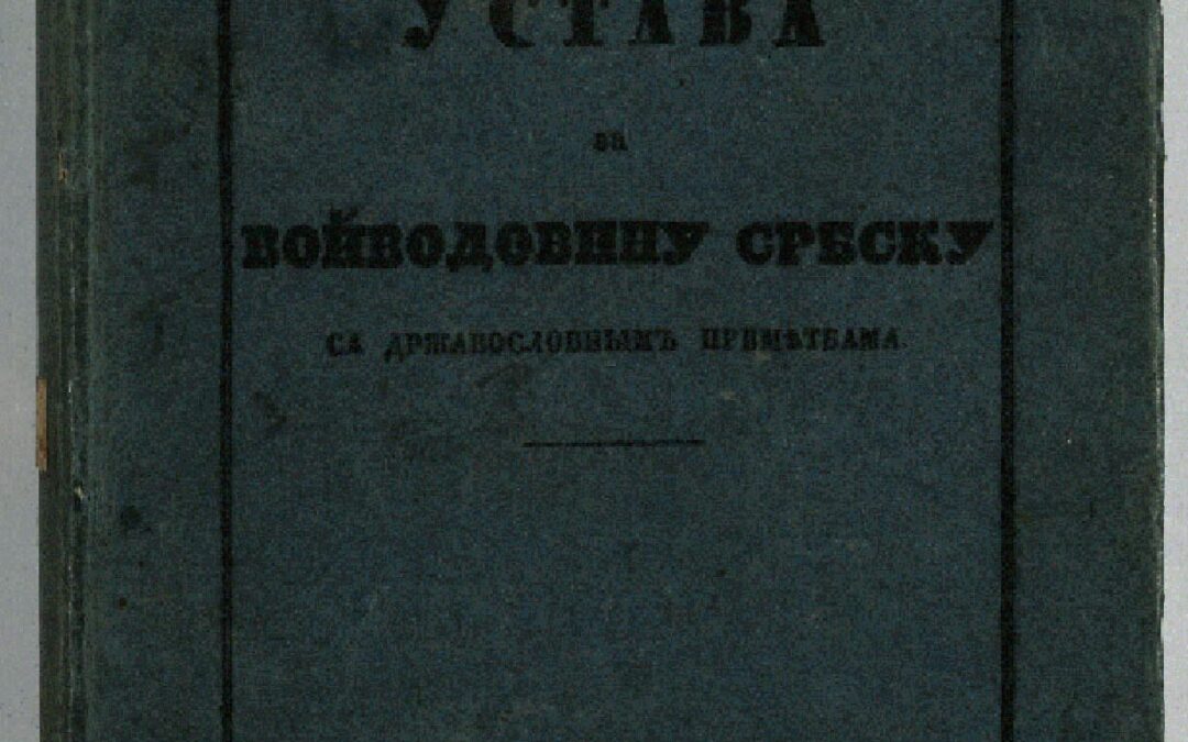 РАДИЧЕВИЋ, Стефан Проектъ Устава за Войводовину србску : са државословнымъ примѣтбама / саставіо Стефанъ Радичевићъ, Княж. Србіє Полковникъ, бывшій Попечитель Правосудія и Просвете. - У Земуну : Печатня Медаковића, 1849. - [2], XIV, 463 [tj. 453], [6] стр. ; 21 cm. Новаковић 1617; Кириловић 1419; КНБС 2266; Српске штампане књиге БМС 1801-1867, 3927.