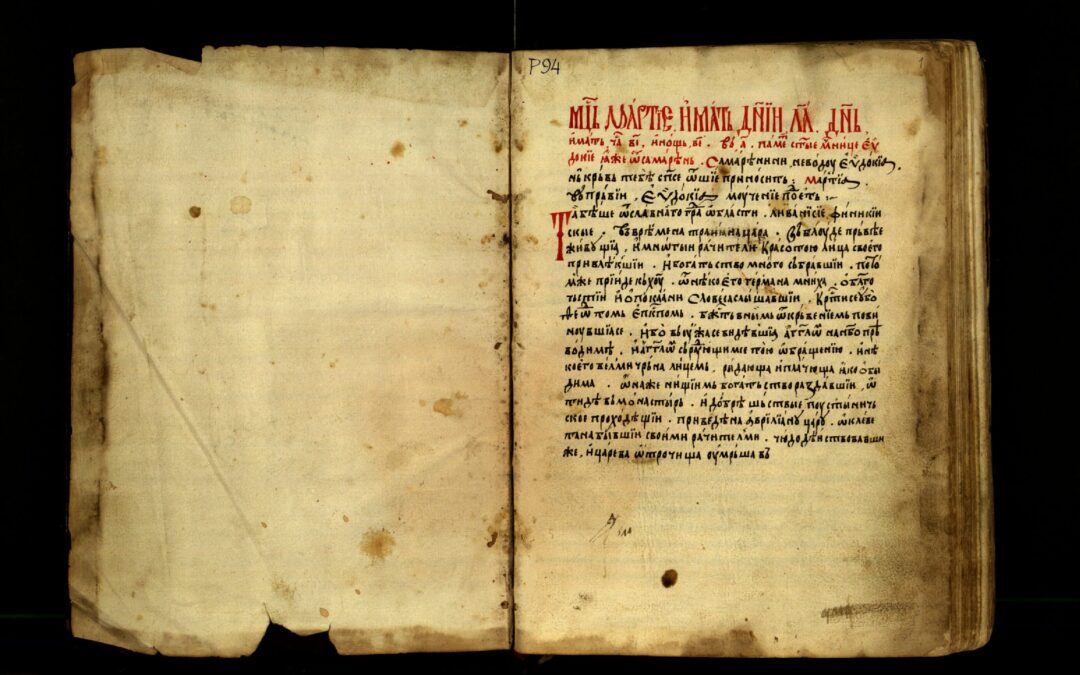 Стиховни пролог за март-јуниПисмо полуустав Више писара Датирано према палеограф. и ортограф. одликама и воденим знацима Иницијали Повез: дрво, кожа.Наслов: Стиховни пролог за март-јуни Збирка: НБС - Збирка ћирилских рукописних књигаБрој страна: 8Величина: 7 MBКликните да преузмете фајл: Стиховни пролог за март-јуни