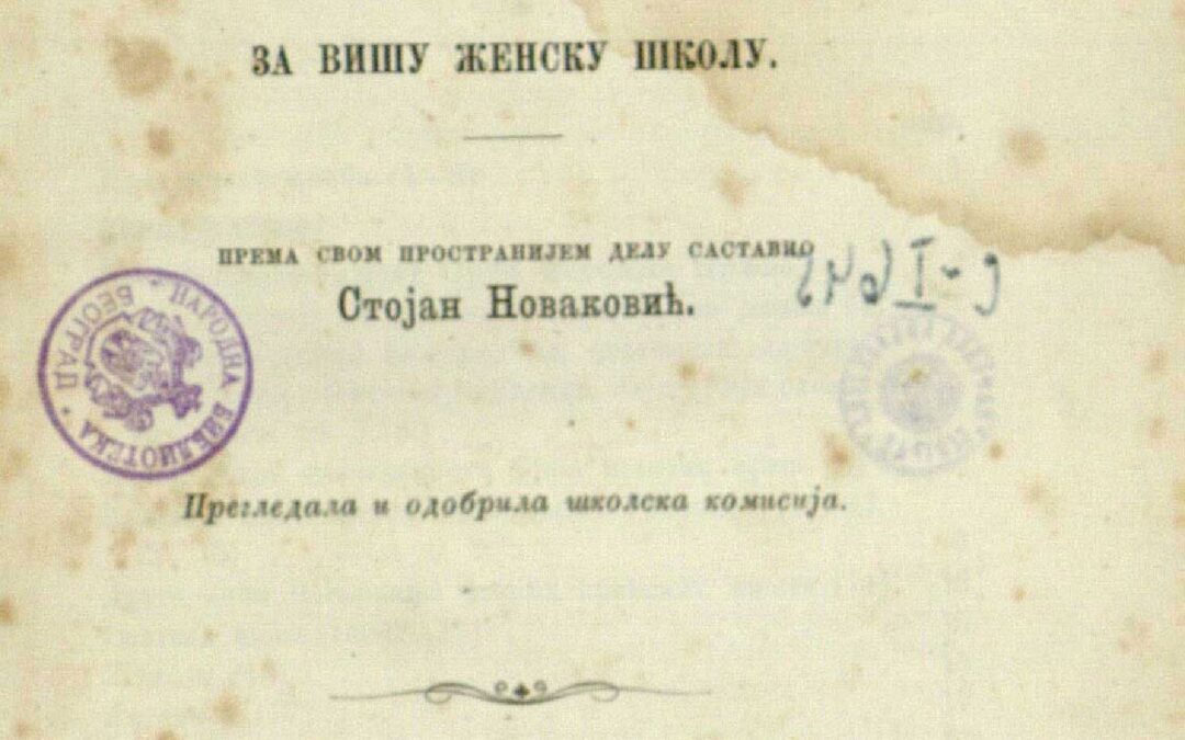 Мали извод из историје српске књижевности : за вишу женску школу - Стојан Новаковић (1867)ПробаНаслов: Мали извод из историје српске књижевности : за вишу женску школу Аутор: Стојан НоваковићИздавач: Државна штампаријаИздато: Београд, 1867 Збирка: НБС - Збирка књига Стојана НоваковићаБрој страна: 65Величина: 21 MBКликните да преузмете фајл: Мали извод из историје српске књижевности : за вишу женску школу - Стојан Новаковић (1867)