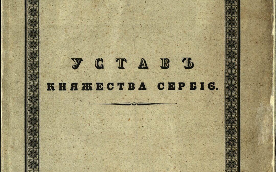 СУЛТАНСКІЙ хатишерифъ, истекшій около половине Шевала 1254 (одъ 10/22 до 12/24 Декемврія 1838) содержаваюћій Уставъ, дарованый Нѣговымъ Высочествомъ жительима Нѣгове Провинціє Сербіє . - У Бѣограду : Печатано у Княжеско-Сербской кньигопечатньи, [1838]. - 8 стр. ; 27 cm. КНБС 2645; Српске штампане књиге БМС 1801-1867, 4628. - Кор. насл.: Уставъ Княжества Сербіє.