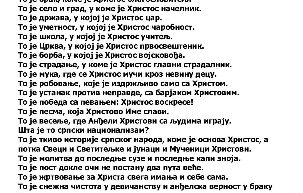 Есеј у коме Владика Николај Велимировић објашњава суштину српског национализма кроз призму хришћанских вредности и традиције.