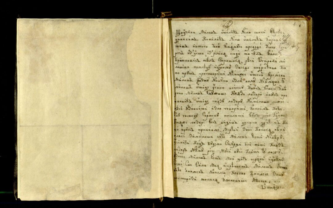 Писмо брзопис Један писар Датирано према запису писара Иницијали, бакрорез Повез: дрво, кожа. Садржи и:Житије кнеза Лазара;